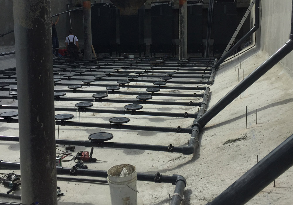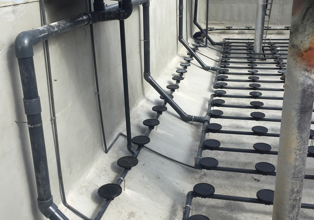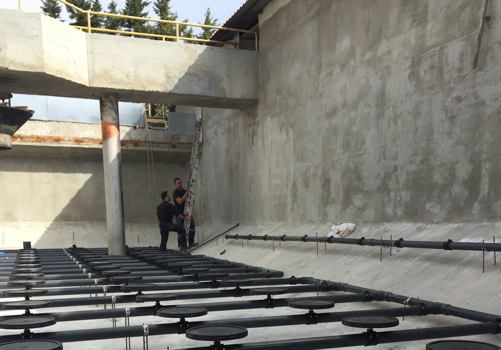 - Προκατασκευή - Κατασκευή και Εγκατάσταση ανοξείδωτων, δικτύων σωληνώσεων και διαχυτών στην δεξαμενή αερισμού.